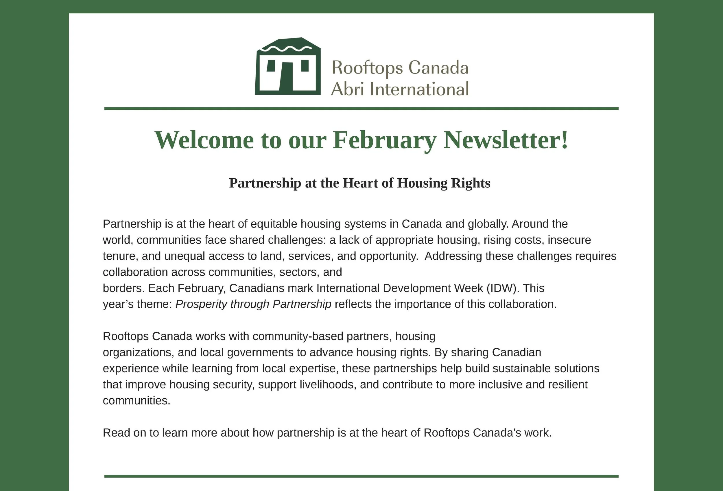 February Newsletter: Partnership at the Heart of Housing Rights